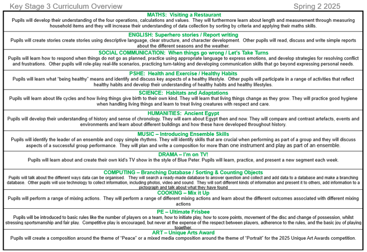 Curriculum Overview KS3 - Spring 2