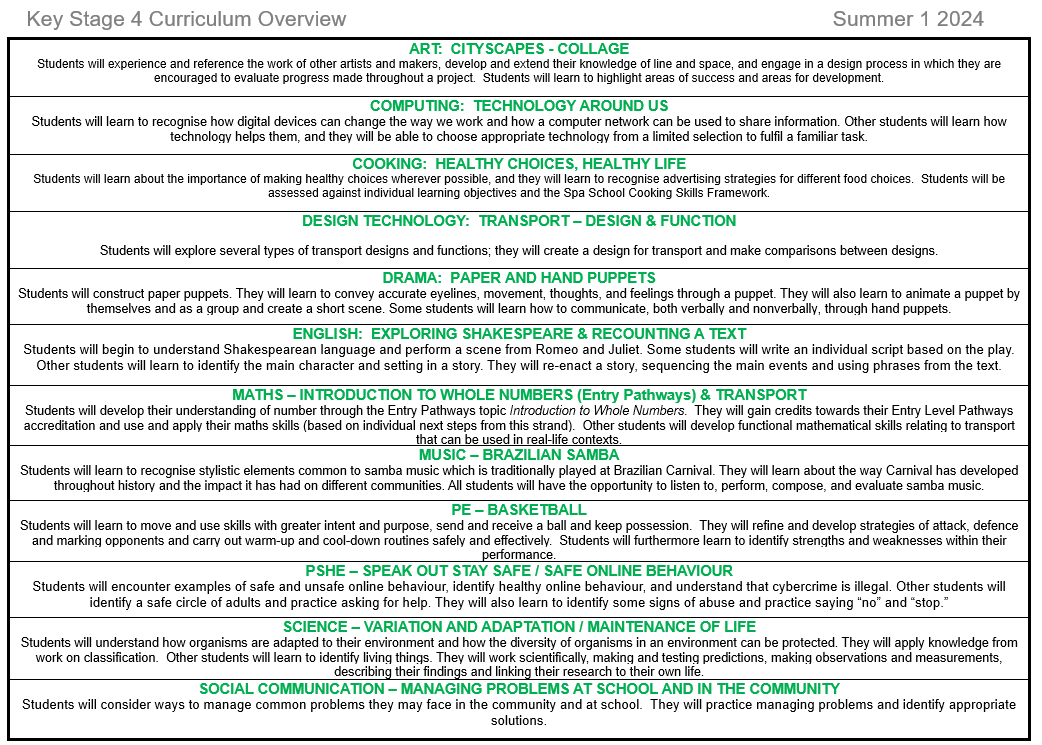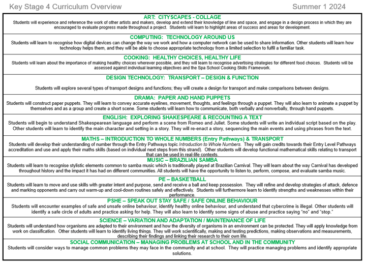 KS4 Summer 1 23/24 Overview